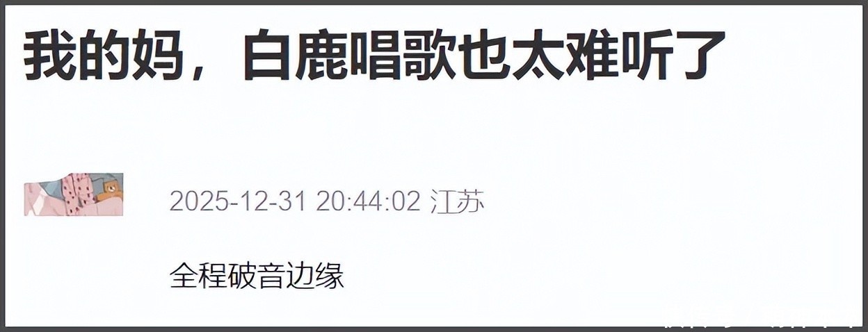 浙江台请了不少演员综艺咖表演,虽然热度够了,但实力也是真的难评。白鹿在舞台上演唱《临江仙》,全程都在破音的边缘,第一句就被网友听出跑调了。