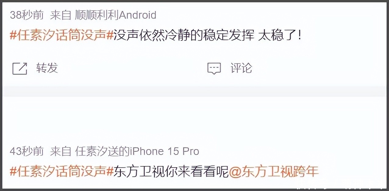 直播晚会难免会有事故,东方卫视任素汐演唱的时候,麦克风就没声,搞得网友还以为是电视坏了。